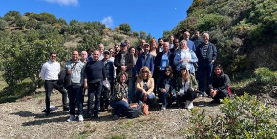 Dans le cadre de la réunion, le consortium a visité un site de démonstration de caroubiers en Crète, l’une des cultures clés incluses dans les essais du projet. Ce site est promu par l’Université Agricole d’Athènes (AUA OFC). Chaque arbre de la parcelle expérimentale est étiqueté pour indiquer le type d’amendement appliqué et équipé de capteurs d’humidité pour mesurer les niveaux du sol avant et après application. La visite a fourni des informations précieuses sur la mise en œuvre pratique des objectifs du projet.